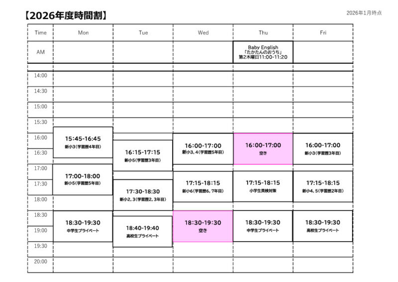 2026年度の時間割が確定いたしました。